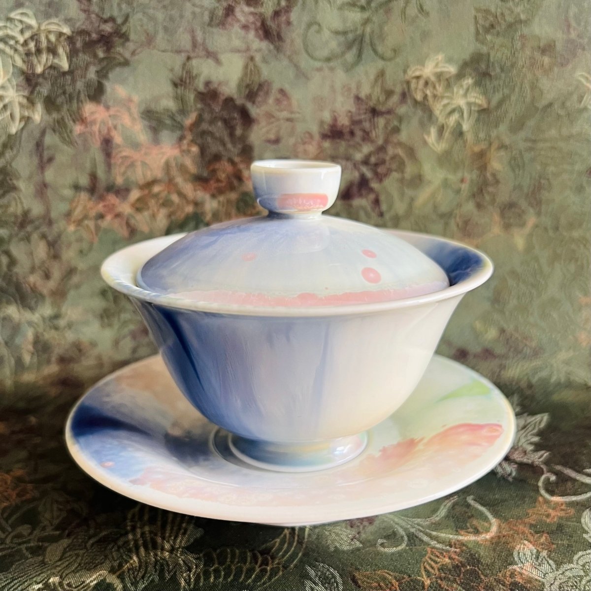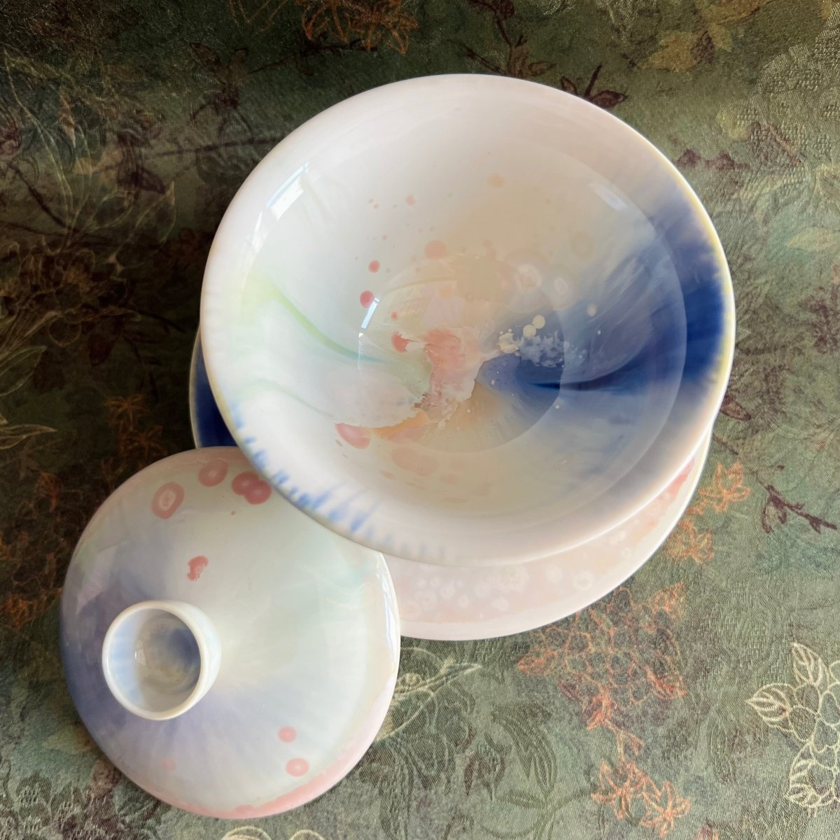 The “Nebula” Gaiwan collection captures the wonder of the cosmos in porcelain form—each piece a small galaxy frozen in glaze. This artist from Jingdezhen, China’s famed porcelain capital, is known for creating glazes that swirl and bloom like celestial clouds, blending color and texture in mesmerizing harmony.