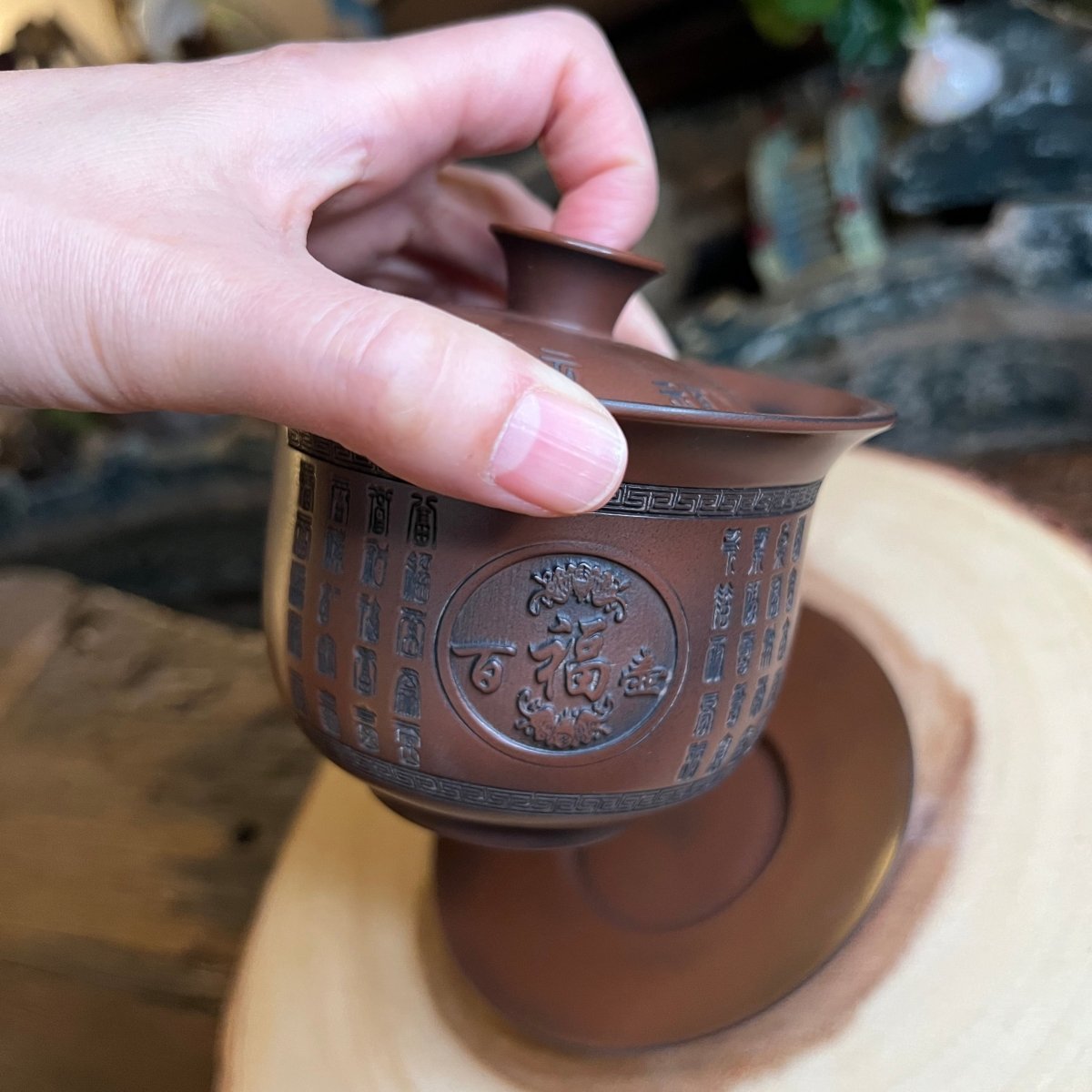 This handcrafted Jianshui clay gaiwan is a celebration of blessing in its fullest form.