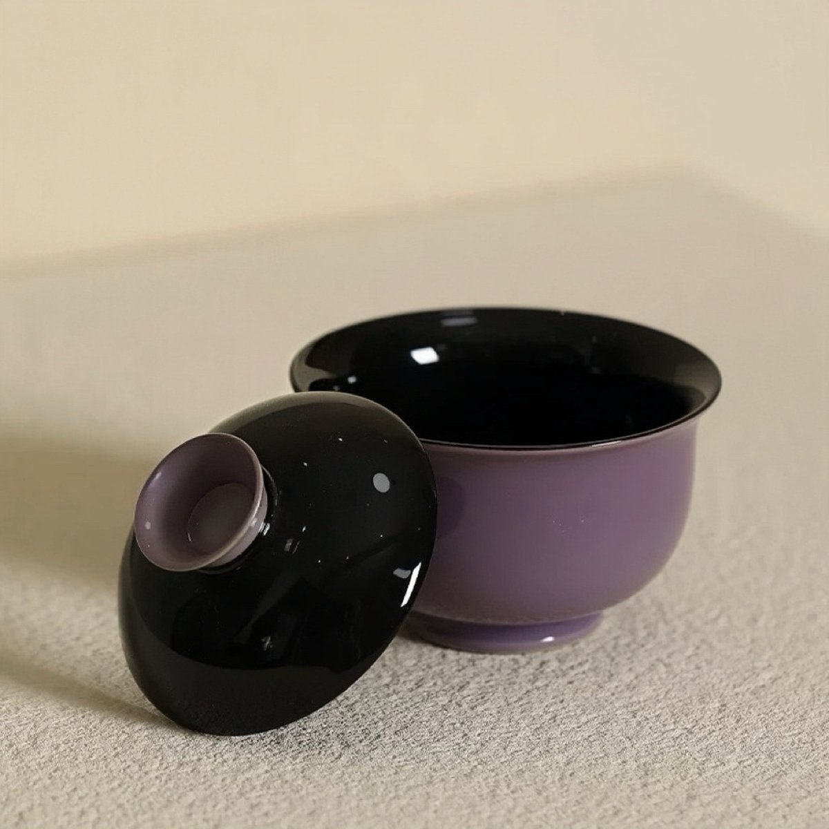 Each piece is shaped with rounded proportions and finished by hand, allowing light to move gently across the surface. The interplay between matte-like softness and reflective depth creates a sense of stillness, inviting slower pours and more intentional moments with tea.