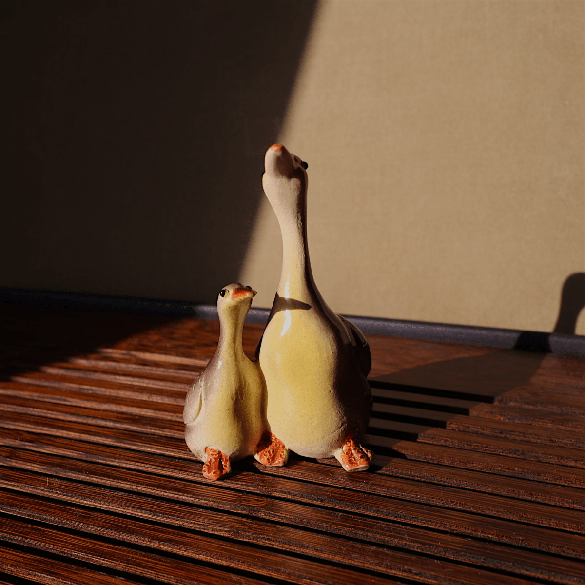 These charming geese teapets come in a pair and add a playful, dynamic touch to your tea table. Painted with a temperature-sensitive glaze, they change color as hot tea or water flows over them. Watching these geese transform with each pour brings a sense of magic and delight to your brewing ritual, making every tea session feel lively and enchanting.