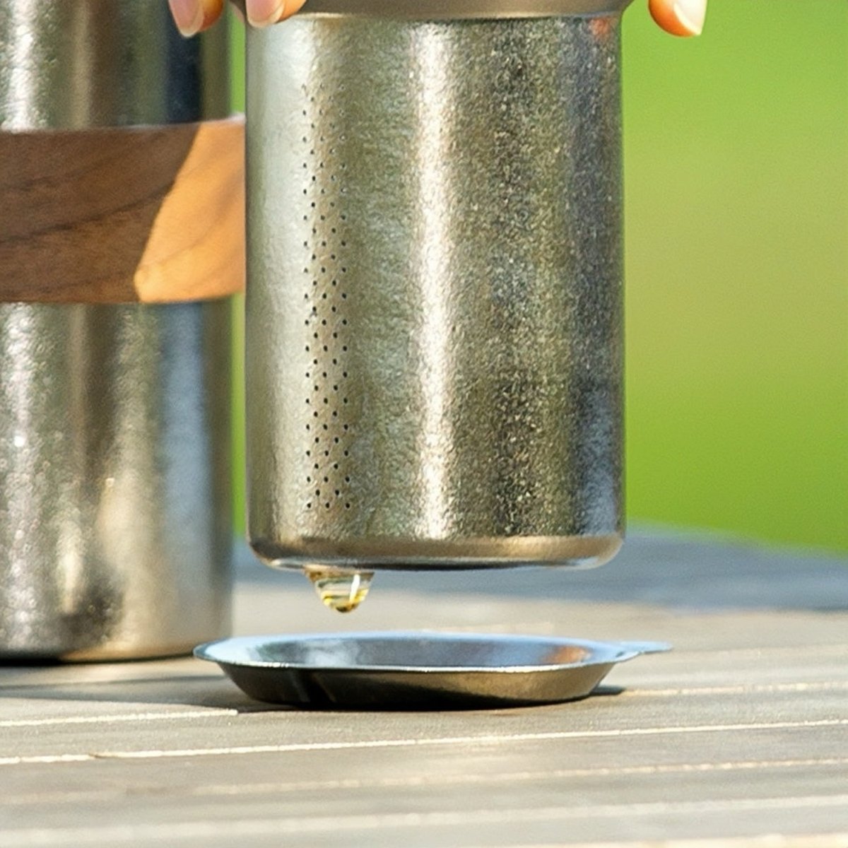 The set is made from high-quality titanium, ensuring durability, lightweight convenience, and excellent heat retention. The intricate, shimmering pattern on the surface enhances its aesthetic appeal. The tea infuser is designed for optimal steeping, allowing for a perfect cup of tea every time. With a compact design, this travel tea set is both functional and decorative, making it a perfect companion for any tea lover's adventures.