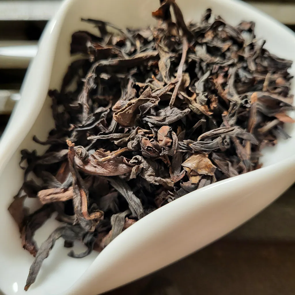This is a Wuyi Rougui (a type of rock oolong that is meticulously charcoal roasted during different sessions over the course of 8-10 months). This tea has a distinct and recognizable Chinese cinnamon aroma—not the sweet kind, but a more savory, woody version that is typical of high-quality Rougui oolong. The flavor is rich and layered, with notes of roasted cacao, maple syrup, and a hint of plum-like sweetness. Towards the end of each sip, there is a mineral brightness emerges, helping to balance the richness and keep the overall profile clean and smooth. The finish is long and pleasant, with a lingering taste of dark chocolate and light maple tree-like woodiness. The tea has a bold body and leaves a calm, meditative feeling after a few cups. If you’re someone who enjoys the roasted profile of coffee, the richness of dark chocolate, or the intensity/complexity of whiskey, this tea delivers a similar depth and satisfaction, but in a completely unique way.